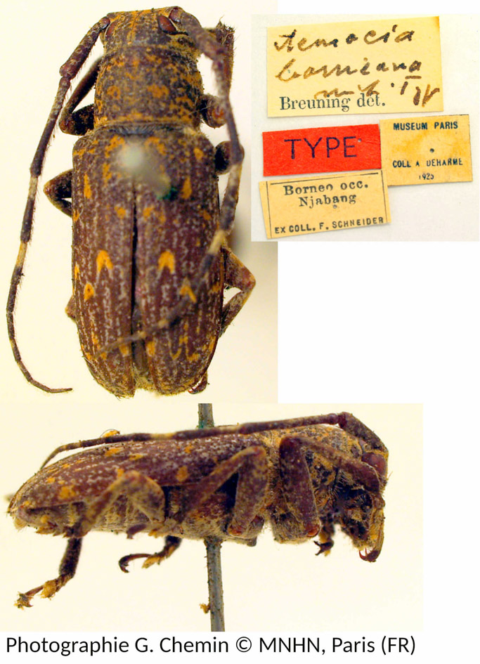 Specimen Type: holotype © MNHN Sex: m Institution: MNHN Museum of Natural History Paris, France Photographer: Gerard Chemin, Cerambycoidea Forum Collection Location: Ngabang, Kalimantan, Borneo 101064