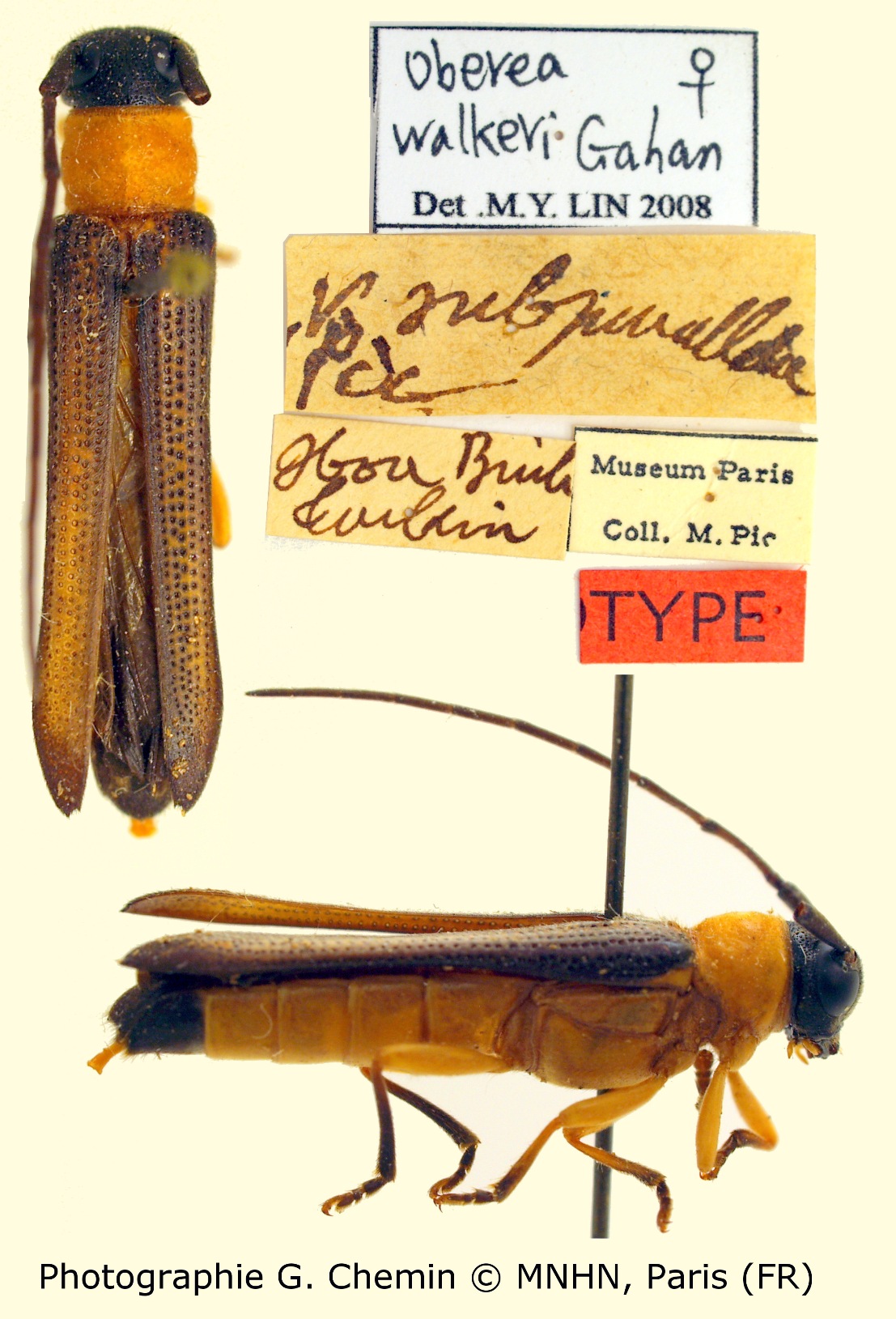 Oberea bicoloritarsis v. subparallela Pic Specimen Type: holotype © MNHN Institution: MNHN Museum of Natural History Paris, France Photographer: Gerard Chemin, Cerambycoidea Forum Collection Location: Tonkin, Vietnam 102966