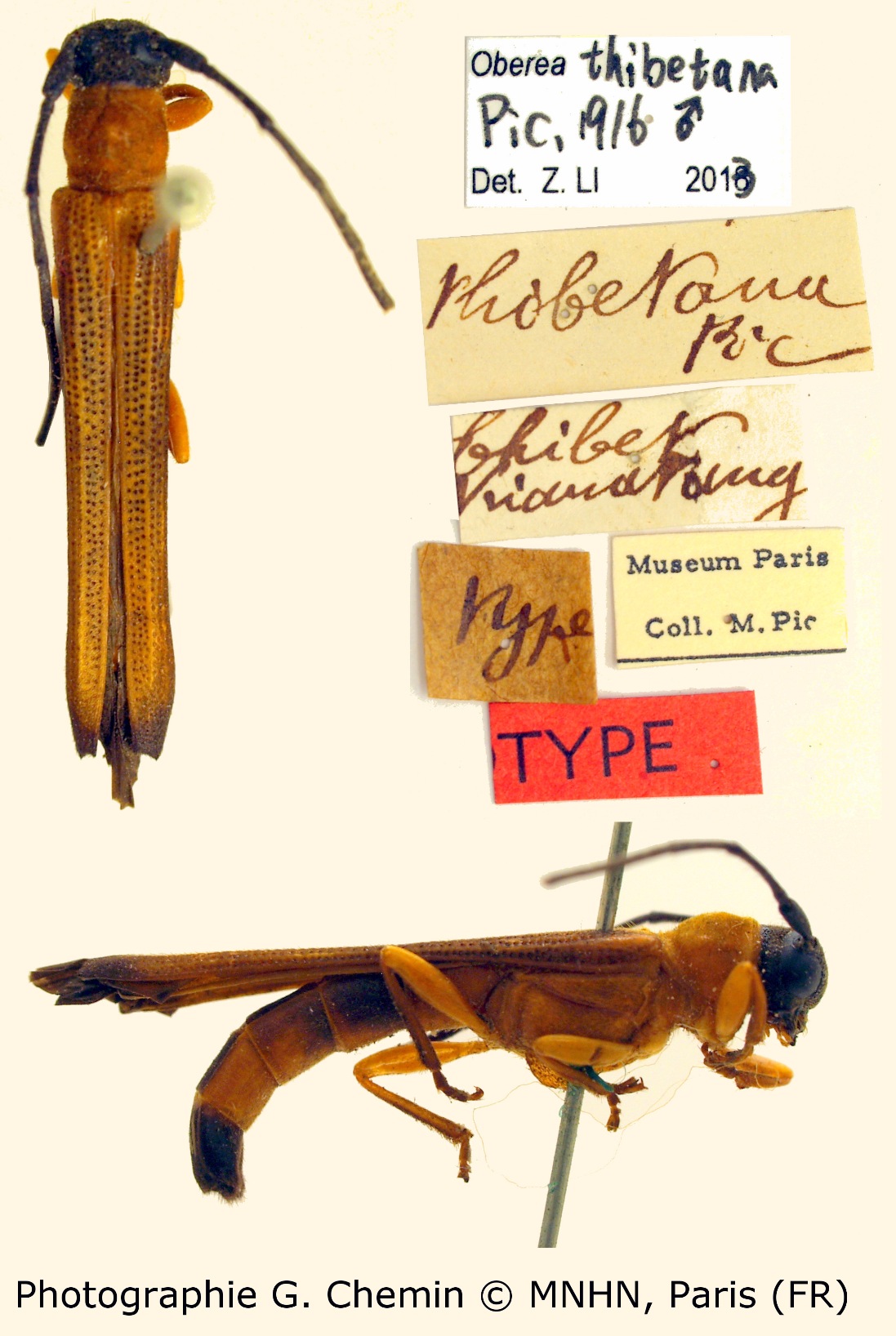 Oberea thibetana Pic Specimen Type: holotype © MNHN Institution: MNHN Museum of Natural History Paris, France Photographer: Gerard Chemin, Cerambycoidea Forum Collection Location: Tibet, China 103001