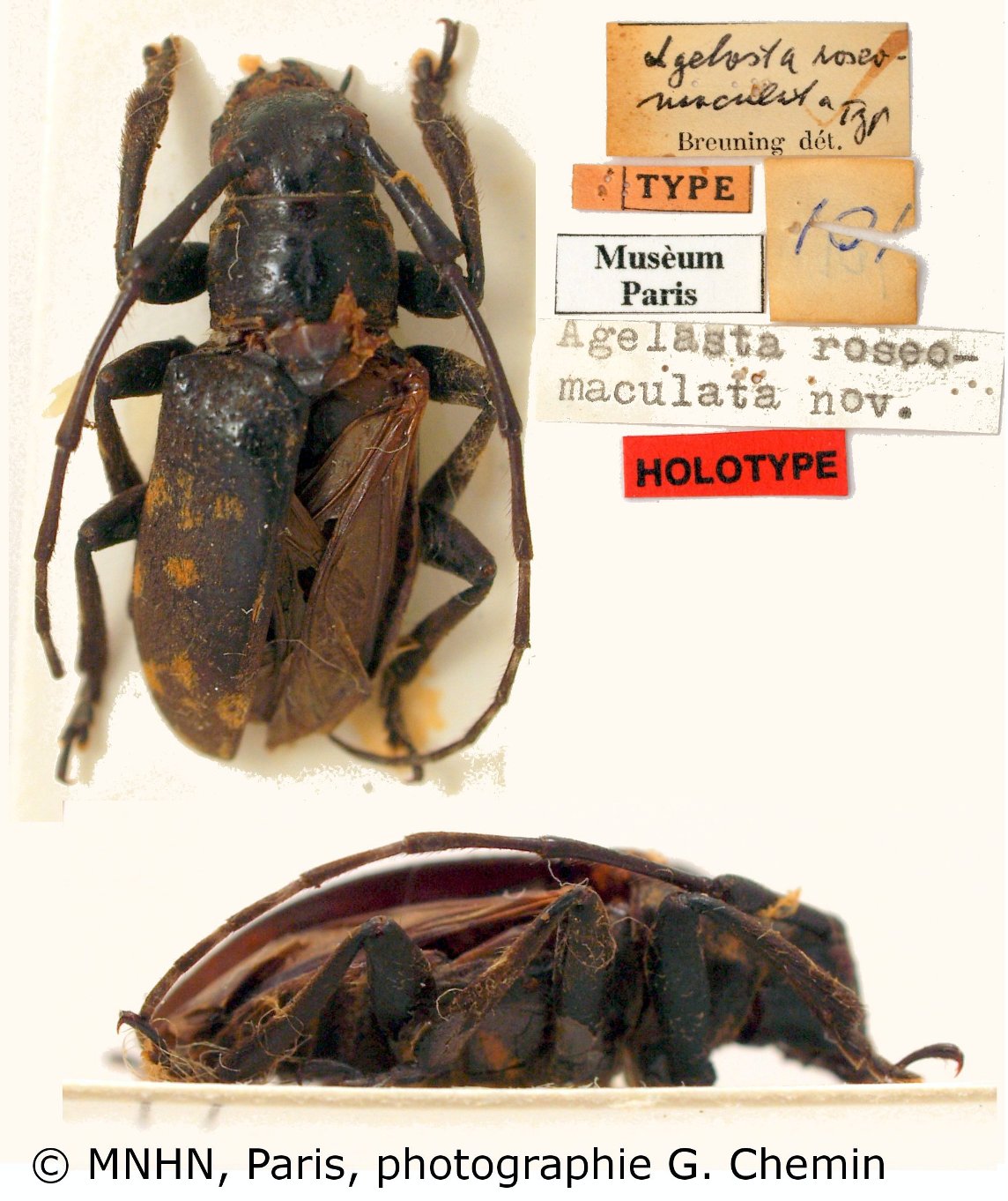 Agelasta roseomaculata Breuning Specimen Type: holotype © MNHN Institution: MNHN Museum of Natural History Paris, France Photographer: Gerard Chemin, Cerambycoidea Forum Collection Location: Mindanao, Philippines 101075