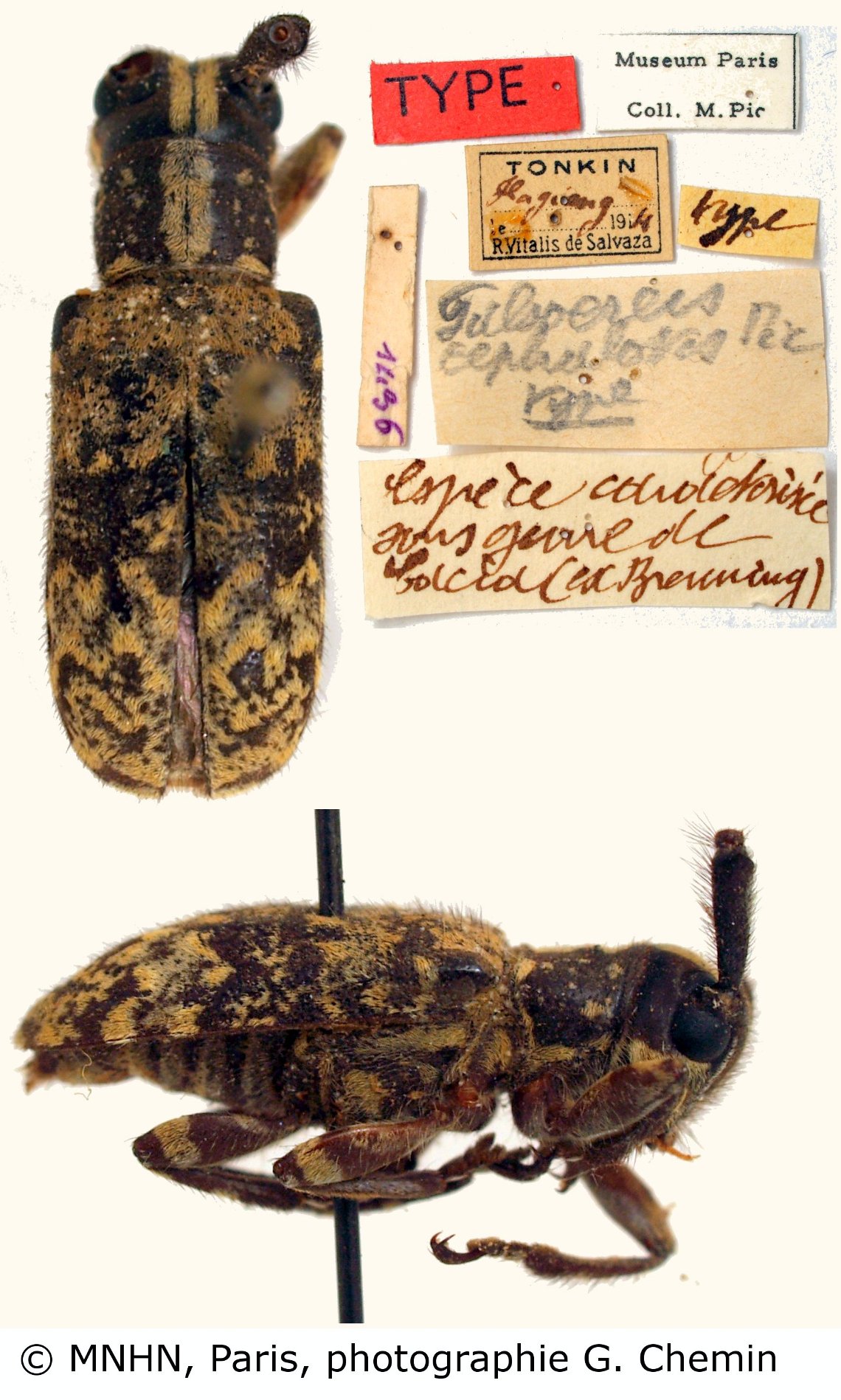 Falsoereis cephalotes Pic Specimen Type: holotype © MNHN Institution: MNHN Museum of Natural History Paris, France Photographer: Gerard Chemin, Cerambycoidea Forum Collection Location: Ha Giang, Tonkin, Vietnam 101150