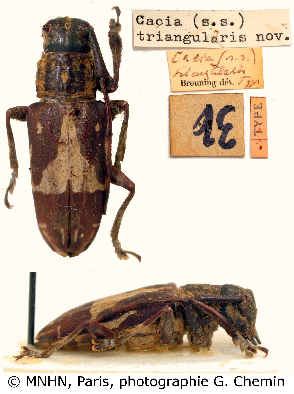 Cacia triangularis Breuning Specimen Type: holotype © MNHN Institution: MNHN Museum of Natural History Paris, France Photographer: Gerard Chemin, Cerambycoidea Forum Collection Location: Philippines 101262
