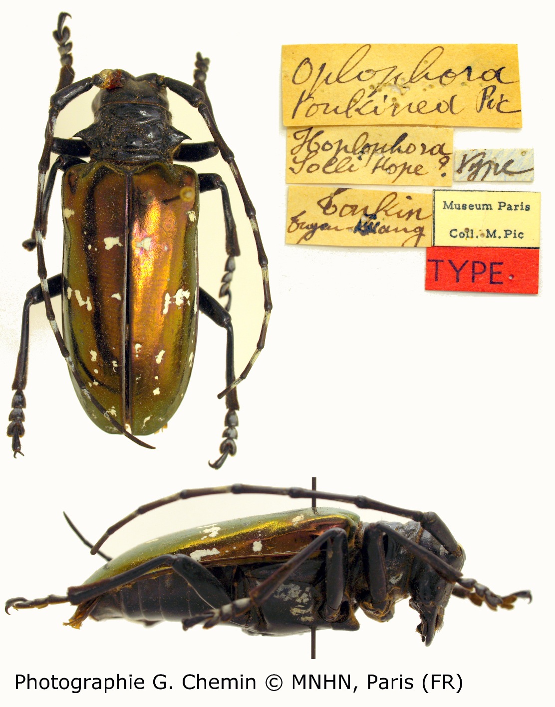 Hoplophora tonkinea Pic Specimen Type: holotype © MNHN Institution: MNHN Museum of Natural History Paris, France Photographer: Gerard Chemin, Cerambycoidea Forum Collection Location: Tuyen Quang, Tonkin, Vietnam 102570