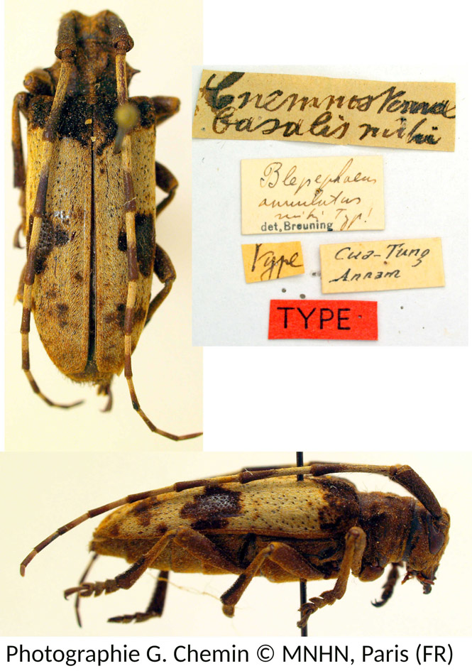 Specimen Type: holotype © MNHN Sex: f Institution: MNHN Museum of Natural History Paris, France Photographer: Gerard Chemin, Cerambycoidea Forum Collection Location: Cua-tung, Annam, Vietnam 101252