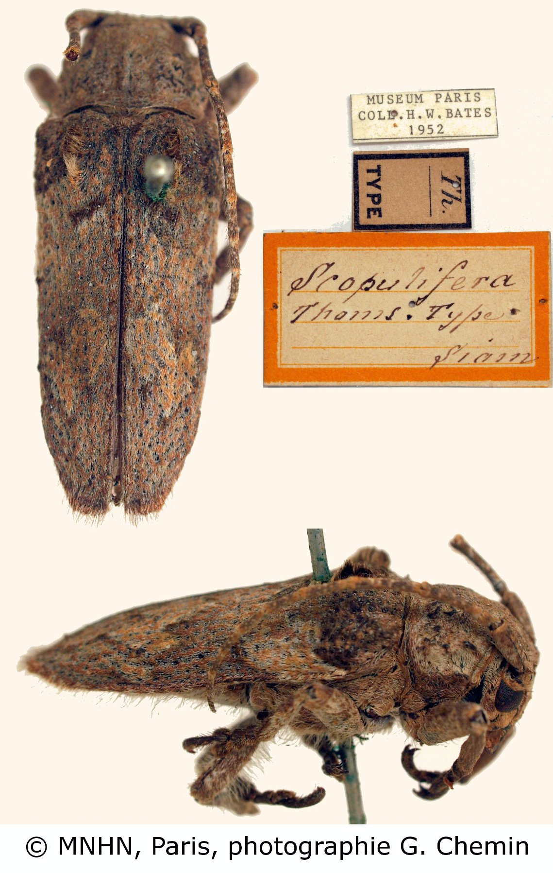Ocheutes scopulifera Thomson Specimen Type: holotype © MNHN Institution: MNHN Museum of Natural History Paris, France Photographer: Gerard Chemin, Cerambycoidea Forum Collection Location: Thailand 101046