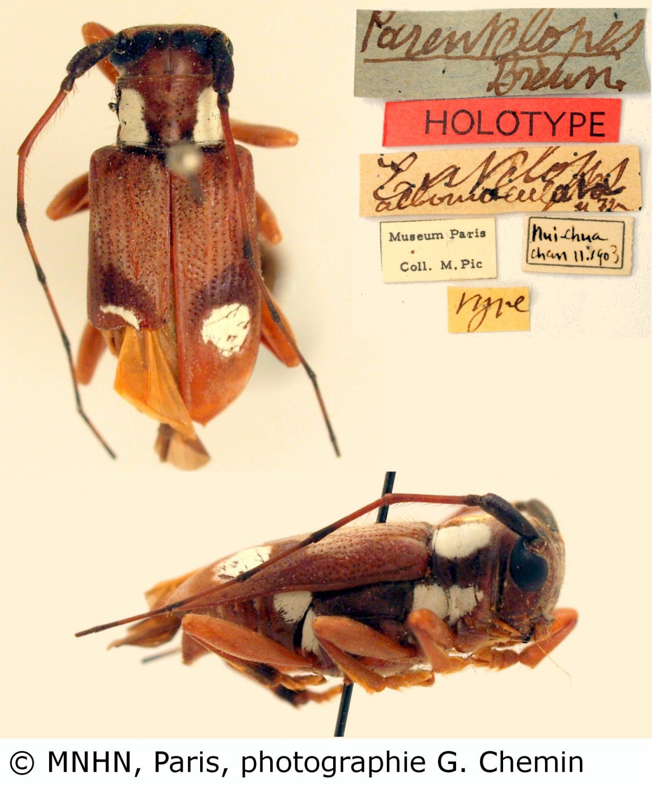 Entelopes albomaculata Pic Specimen Type: holotype © MNHN Institution: MNHN Museum of Natural History Paris, France Photographer: Gerard Chemin, Cerambycoidea Forum Collection Location: Nui-chua-chan, Tonkin, Vietnam 102387