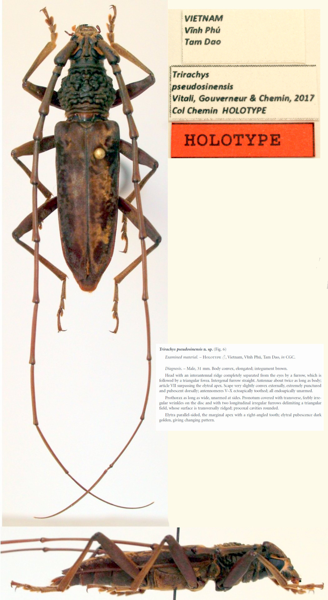 Specimen Type: holoype Sex: m Institution: Chemin Collection Photographer: Gerard Chemin, Cerambycoidea Forum Collection Location: Tam Dao, Vinh Phuc Province, Vietnam 102367