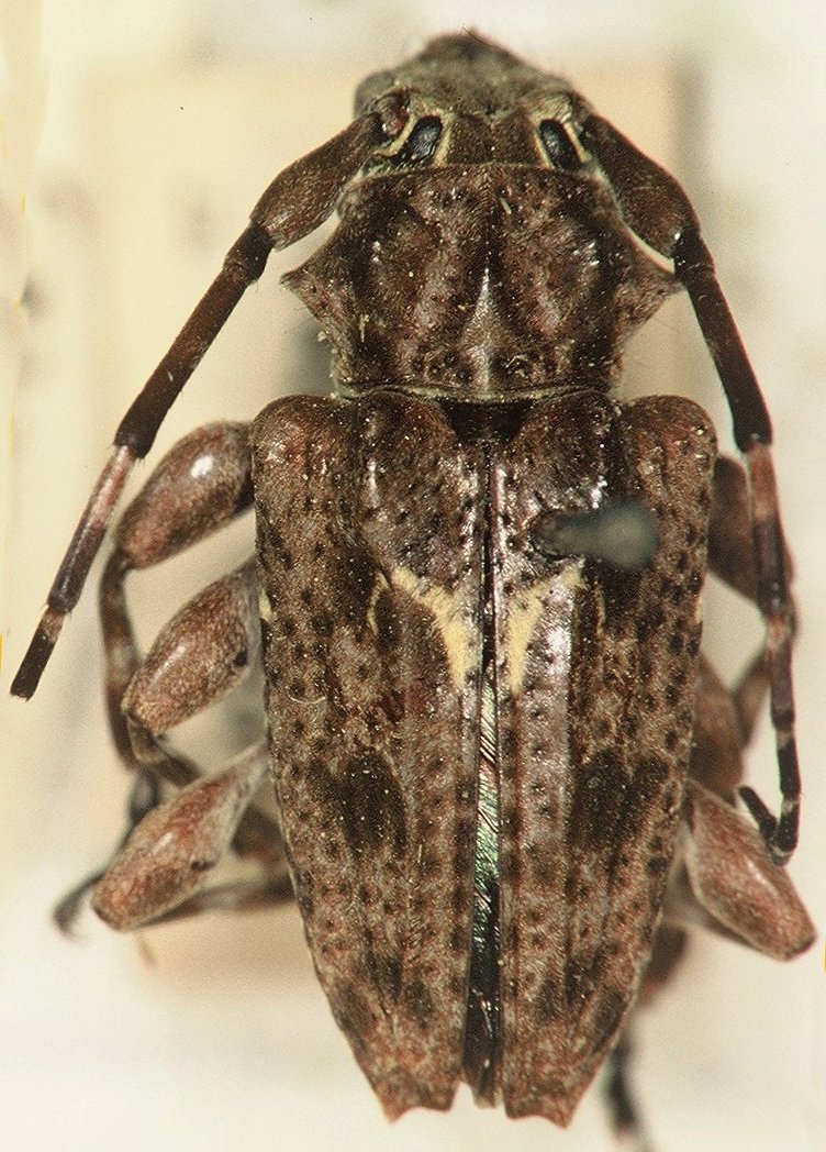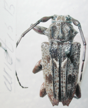 Acanthoderes arietis Bates Specimen Type: syntype Sex: f Institution: BMNH British Museum Natural History, London, UK Photographer: John Chemsak Collection Location: Cerro Zunil, Quetzaltenango, Guatemala 14890