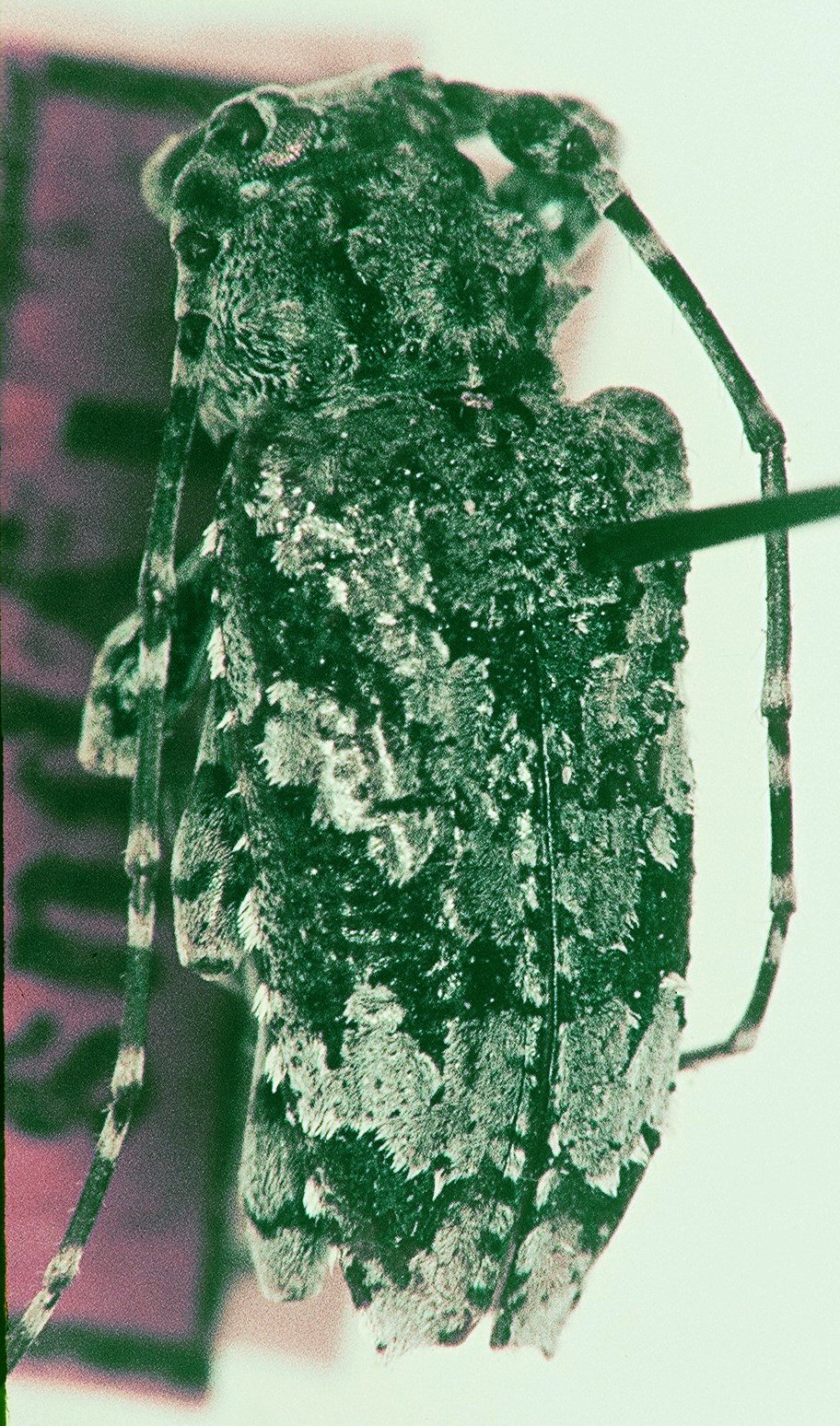 Acanthoderes sexmaculatus Fuchs Specimen Type: holotype Sex: f Institution: HS Herbert Schmid Collection, Vienna, Austria Photographer: Herbert Schmid Collection Location: Blumenau, Santa Catarina, Brazil 20822