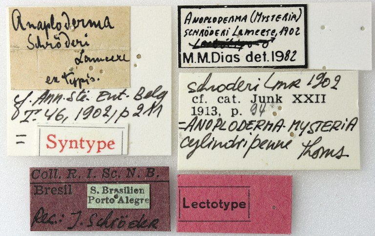 Anoploderma schroederi Lameere Specimen Type: lectotype Sex: m Institution: RBINS Royal Belgian Institute of Natural Sciences, Brussels, Belgium Photographer: J Pirkl Collection Location: Porto Alegre, Rio Grande do Sul, Brazil 65283