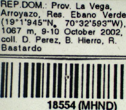 Institution: MCZ Museum of Comparative Zoology, Harvard University, Cambridge, MA, USA Collection Location: La Vega, Dominican Republic 25122