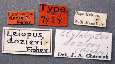 Leiopus dozieri Fisher Specimen Type: paratype Institution: MCZ Museum of Comparative Zoology, Harvard University, Cambridge, MA, USA Photographer: P. Naskrecki, P. Perkins, and B. Farrell Collection Location: Cape, Haiti 24942