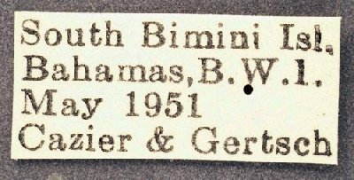 Institution: MCZ Museum of Comparative Zoology, Harvard University, Cambridge, MA, USA Collection Location: South Bimini, British West Indies 25123