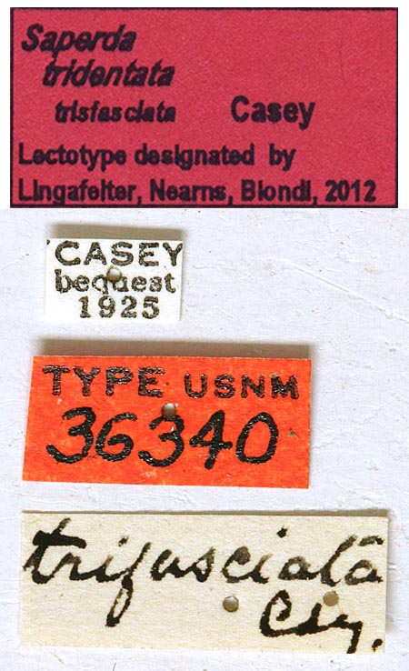 Saperda tridentata trifasciata Casey Specimen Type: holotype Institution: NMNH United States National Museum, Washington, DC, USA Photographer: Steve Lingafelter Collection Location: Indiana 40197