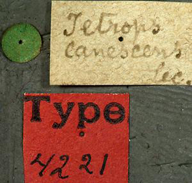 Tetrops canescens LeConte Specimen Type: holotype Institution: MCZ Museum of Comparative Zoology, Harvard University, Cambridge, MA, USA Photographer: P. Naskrecki, P. Perkins, and B. Farrell 3096
