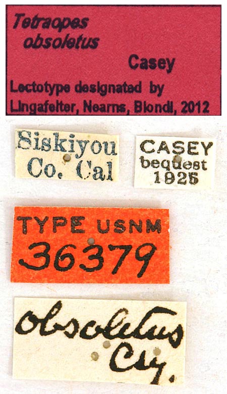 Tetraopes obsoletus Casey Specimen Type: lectotype Institution: NMNH United States National Museum, Washington, DC, USA Photographer: Steve Lingafelter Collection Location: Siskiyou County, California 40229