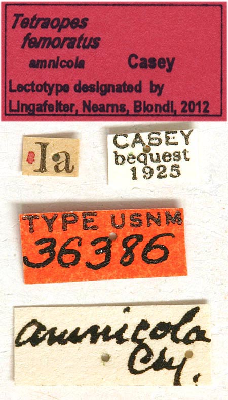 Tetraopes femoratus amnicola Casey Specimen Type: lectotype Institution: NMNH United States National Museum, Washington, DC, USA Photographer: Steve Lingafelter Collection Location: Keokuk, Iowa 40240