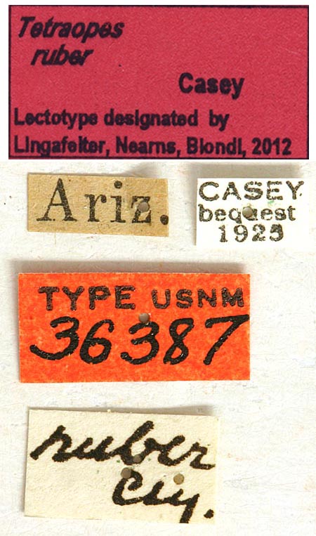 Tetraopes ruber Casey Specimen Type: lectotype Sex: m Institution: NMNH United States National Museum, Washington, DC, USA Photographer: Steve Lingafelter Collection Location: Arizona 40253