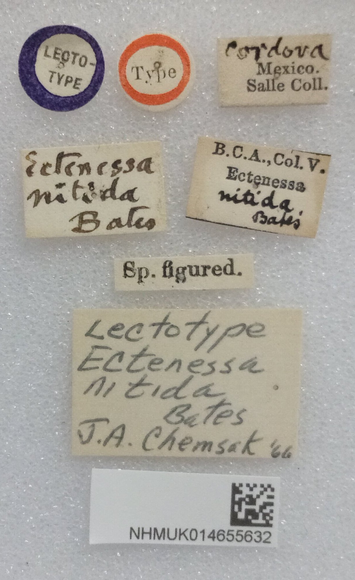 Specimen Type: paralectotype Institution: BMNH British Museum Natural History, London, UK Photographer: Keita Matsumoto Collection Location: Cordova, Veracruz, Mexico 77507