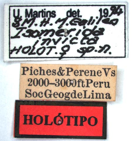 Specimen Type: holotype Sex: f Institution: NMNH United States National Museum, Washington, DC, USA Photographer: Steve Lingafelter Collection Location: Piches and Perene Valleys, Junin, Peru 68649