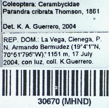 Parandra laevis Schoenherr Sex: m Institution: Chevrolat Photographer: Antonio Santos-Silva 27553