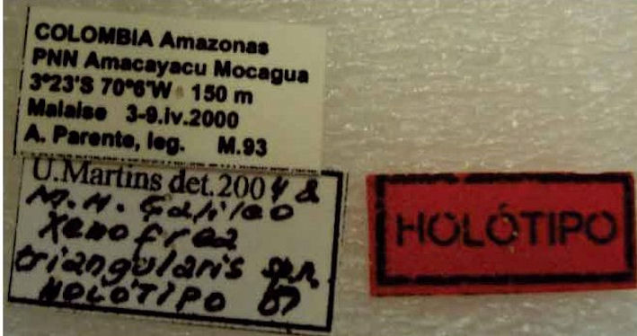 Xenofrea triangularis Martins & Galileo Specimen Type: holotype Sex: f Institution: IAHC Instituto de Investigaciones