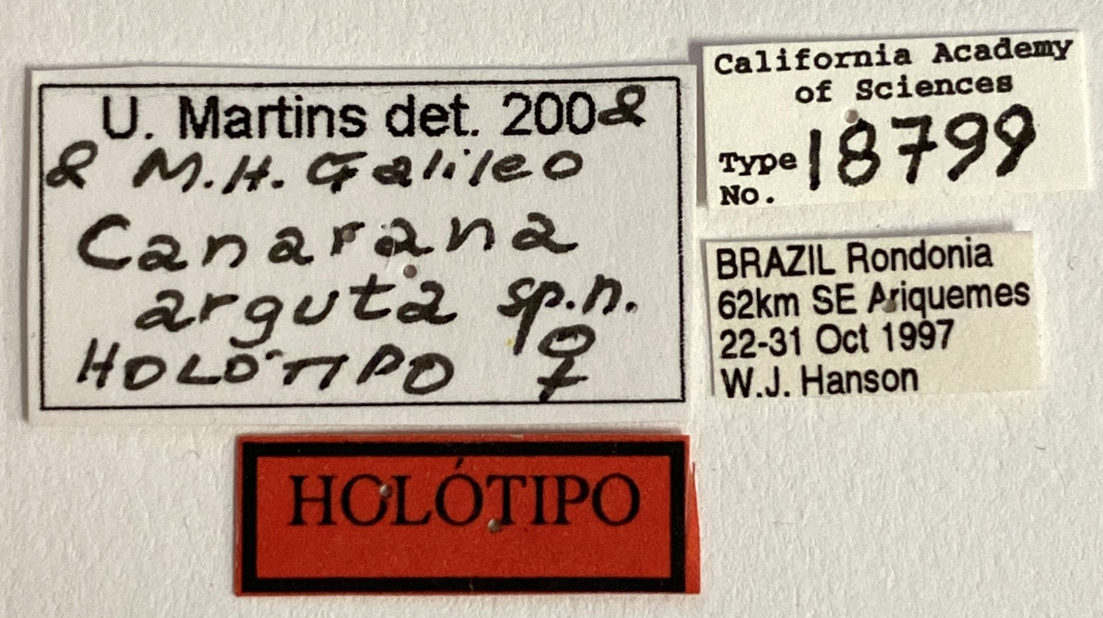 Specimen Type: holotype Sex: f Institution: CAS California Academy of Sciences, San Francisco, CA, USA Photographer: Chris Grinter Collection Location: 62 Km SE Ariquemes, Rondonia, Brazil 74537
