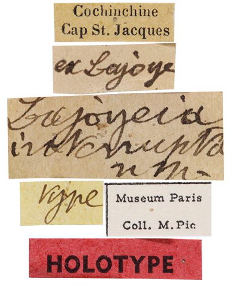 Lajoyeia interrupta Pic Specimen Type: holotype Institution: MNHN Museum of Natural History Paris, France Photographer: Azadeh Taghavian Collection Location: Cochinchine, Vietnam 70761