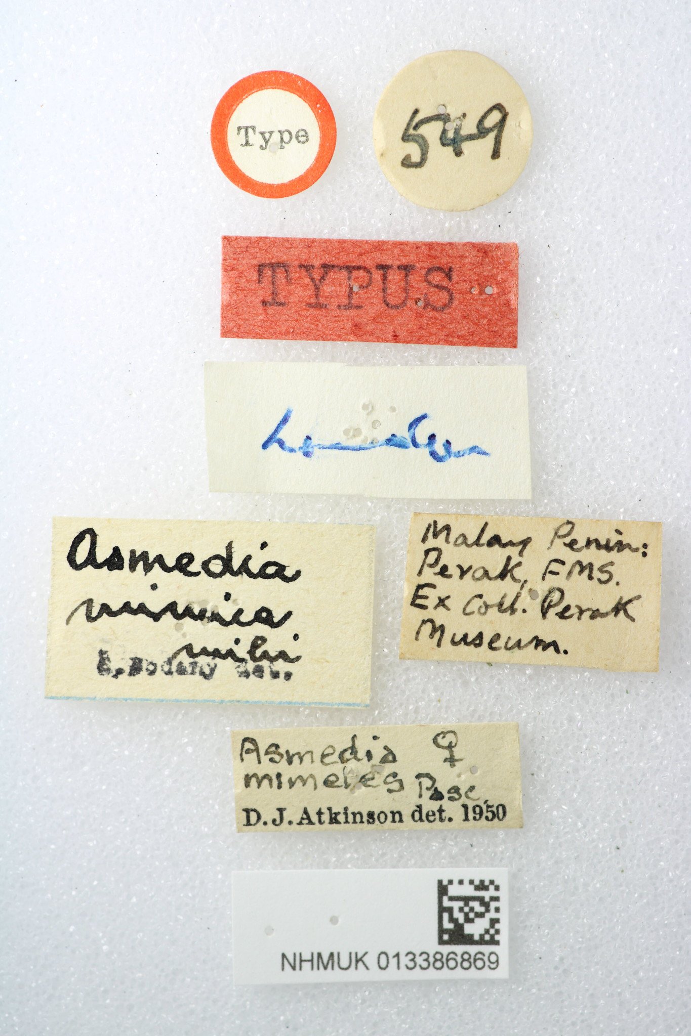 Specimen Type: holotype Sex: f Institution: BMNH British Museum Natural History, London, UK Photographer: Keita Matsumoto Collection Location: Perak, Malacca, Malaysia 91039