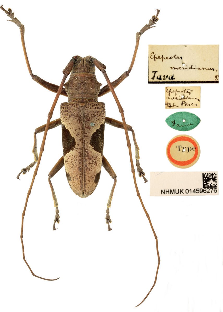 Epepeotes meridianus Pascoe Specimen Type: holotype Sex: m Institution: BMNH British Museum Natural History, London, UK Photographer: Keita Matsumoto Collection Location: Java, Indonesia 90217