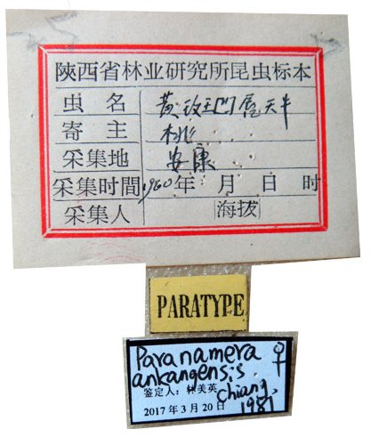 Paranamera ankangensis Chiang Specimen Type: paratype Sex: f Institution: NWAFU Collection Location: An Kang, Shaanxi Province, China 69570