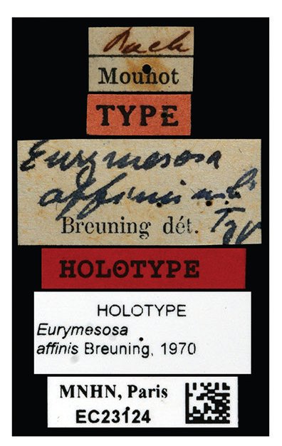 Eurymesosa affinis Breuning Specimen Type: holotype Sex: f Institution: MNHN Museum of Natural History Paris, France Photographer: Christophe Rivier Collection Location: Pach Mohout Pachbon, VientianeLaos 90864