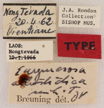 Eurymesosa albostictica Breuning Specimen Type: holotype Sex: m Institution: BPBM Bernice P. Bishop Museum, Honolulu, Hawaii, USA Photographer: Nobuo Ohbayashi Collection Location: Vientiane, Laos 44541