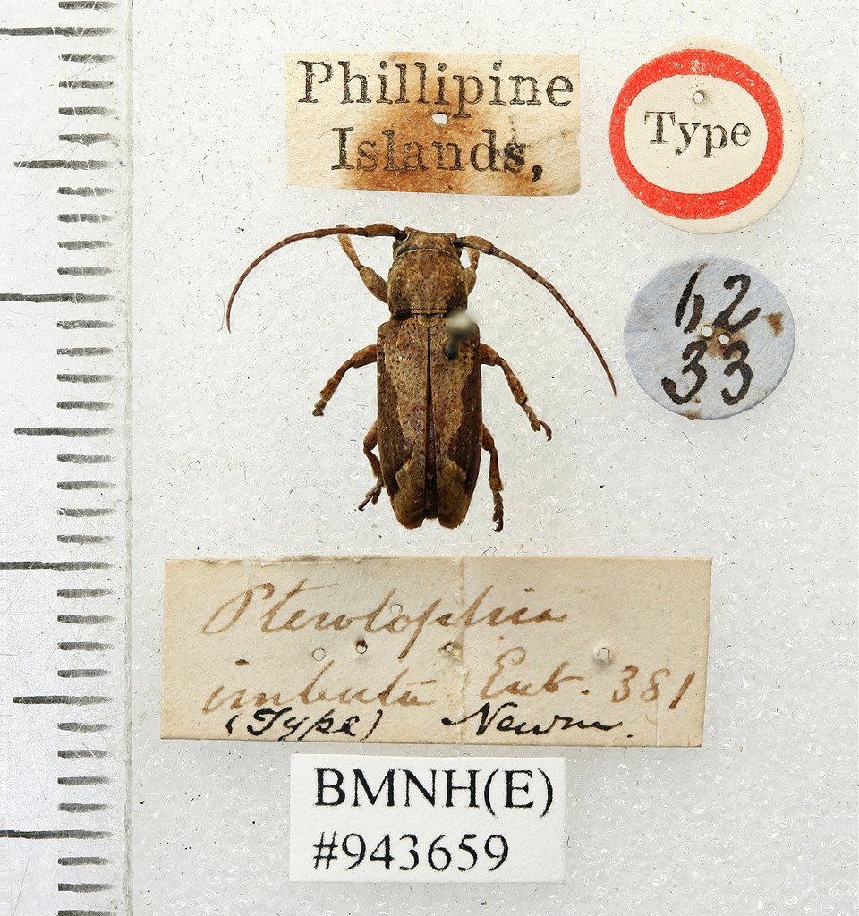 Pterolophia imbuta Newman Specimen Type: holotype Institution: BMNH British Museum Natural History, London, UK Photographer: Keita Matsumoto Collection Location: Manilla, Luzon, Philippines 65982