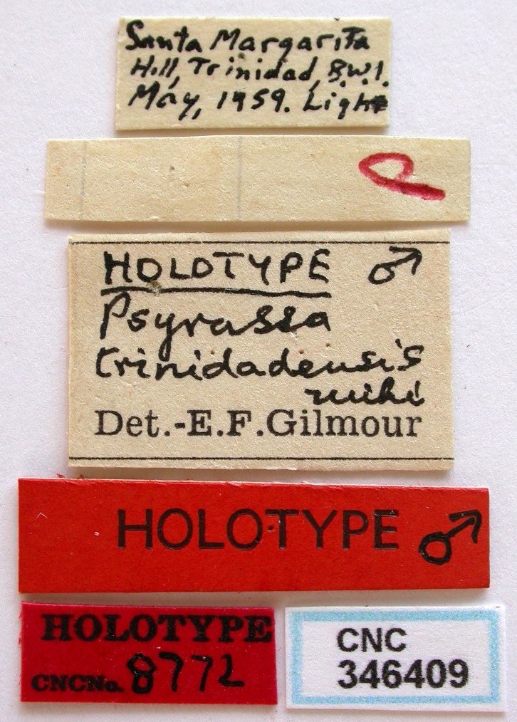 Psyrassa trinidadensis Gilmour Specimen Type: holotype Sex: f Institution: CNC Canadian National Collection of Insects, Ottawa, Ontario, Canada Photographer: Serge Laplante, photograph and data Determiner: Copyright of