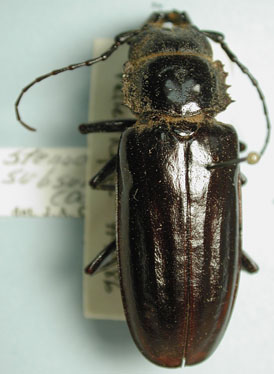 Prionus subsulcatus Dalman Specimen Type: holotype Institution: NHRS Naturhistoriska Riksmuseet, Stockholm, Sweden Photographer: JS Moure Collection Location: Honduras 101852