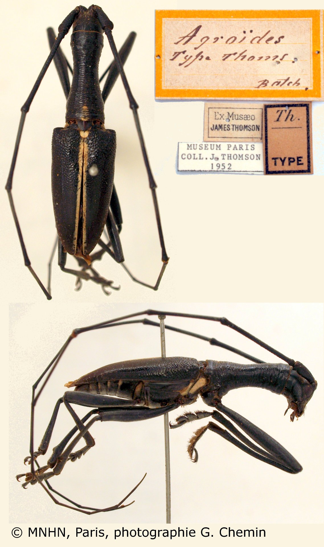 Gnoma agroides Thomson Specimen Type: holotype Institution: MNHN Museum of Natural History Paris, France Photographer: Gerard Chemin, Cerambycoidea Forum Collection Location: Batchian Island, Molucca Islands, Indonesia 101042