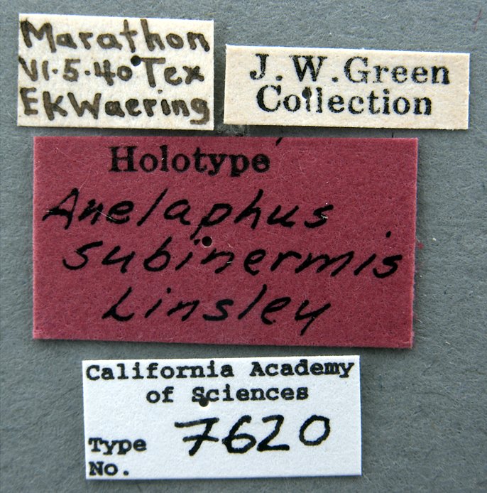 Anelaphus antennatus Chemsak Specimen Type: holotype Sex: m Institution: CAS California Academy of Sciences, San Francisco, CA, USA Photographer: Larry G. Bezark Collection Location: Fort Davis, Jeff Davis County, Texas 22487