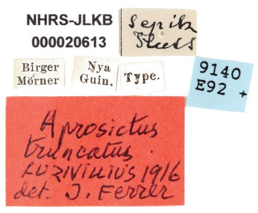 Aprosictus truncatus Aurivillius Specimen Type: holotype Sex: m Institution: NHRS Naturhistoriska Riksmuseet, Stockholm, Sweden Photographer: Johannes Bergsten Collection Location: Sepik Fluss, Papua New Guinea 71063