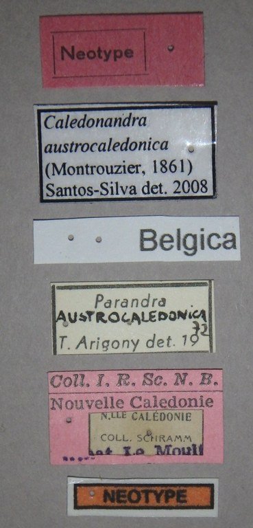 Parandra austrocaledonica Montrouzier Specimen Type: neotype ©IRSNB Institution: IRSNB Royal Belgian Institute of Natural Sciences, Brussels, Belgium Photographer: Camille Locatelli Collection Location: New Caledonia 77371