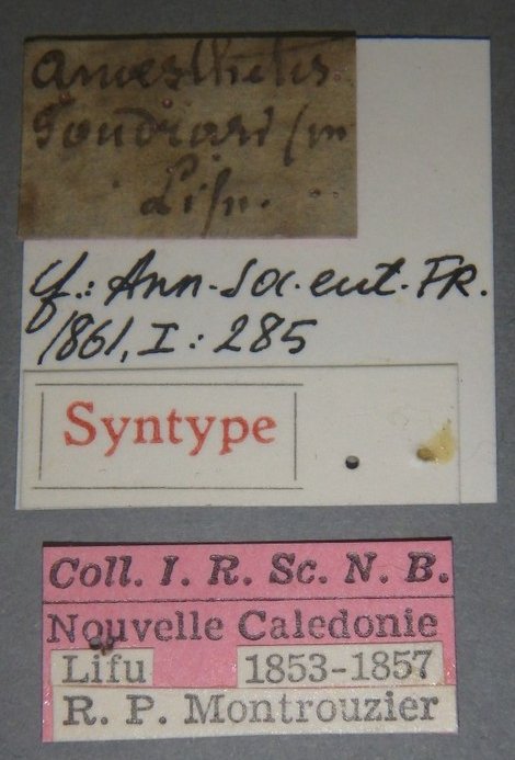 Anoesthesis foudrasi Montrouzier Specimen Type: holotype ©IRSNB Institution: IRSNB Royal Belgian Institute of Natural Sciences, Brussels, Belgium Photographer: Florence Trus Collection Location: Lifu, New Caledonia 77520