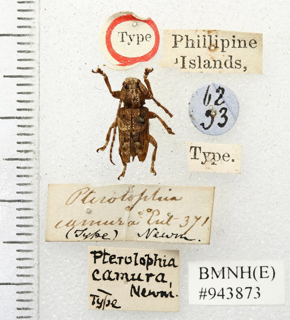 Pterolophia camura Newman Specimen Type: holotype Institution: BMNH British Museum Natural History, London, UK Photographer: Keita Matsumoto Collection Location: Philippines 65979