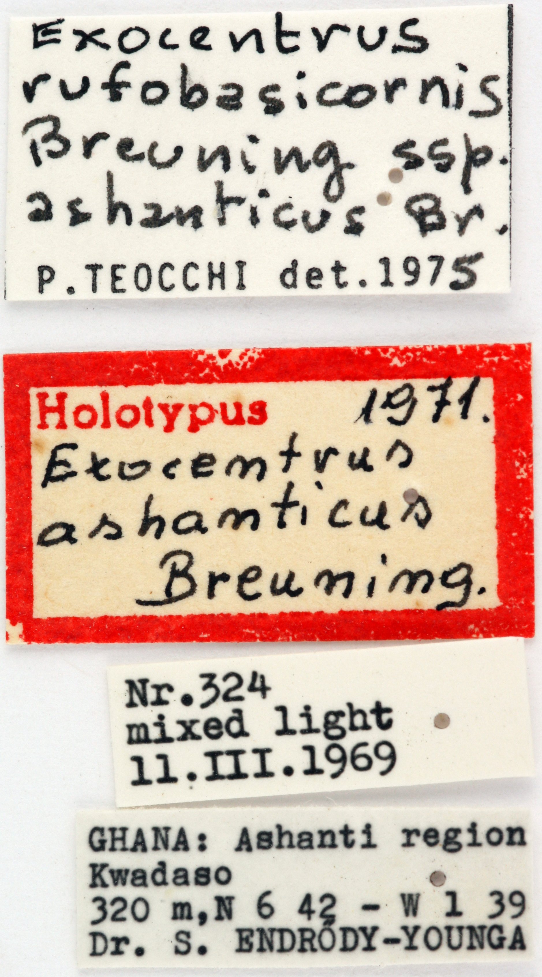 Exocentrus ashanticus Breuning Specimen Type: holotype Institution: MTMB Magyar Természettudományi Műzeum, Budapest, Hungary Photographer: Jerome Sudre Collection Location: Ashanti, Ghana 90204