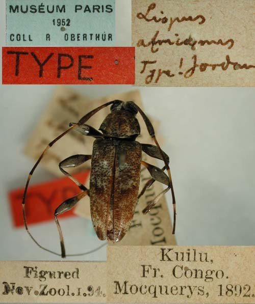 Liopus africanus Jordan Specimen Type: holotype © MNHN Sex: m Institution: MNHN Museum of Natural History Paris, France Photographer: Gerard Tavakilian Collection Location: Kuilu, Democratic Republic Congo 77184