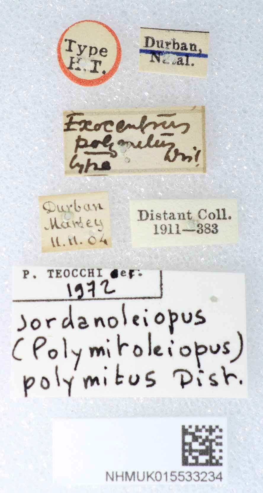 Exocentrus polymitus Distant Specimen Type: holotype Sex: m Institution: BMNH British Museum Natural History, London, UK Photographer: Keita Matsumoto Collection Location: Durban, Natal, South Africa 95713