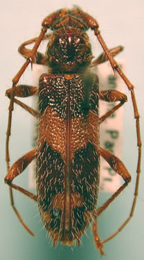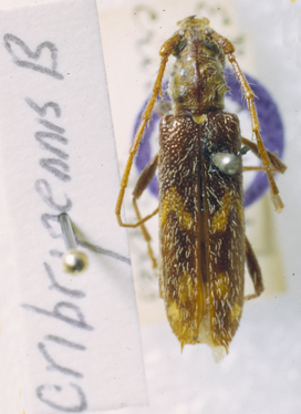 Eurysthea cribripennis Bates Specimen Type: lectotype Sex: f Institution: BMNH British Museum Natural History, London, UK Photographer: John Chemsak Collection Location: Volcan de Chiriquí, Panama 16644