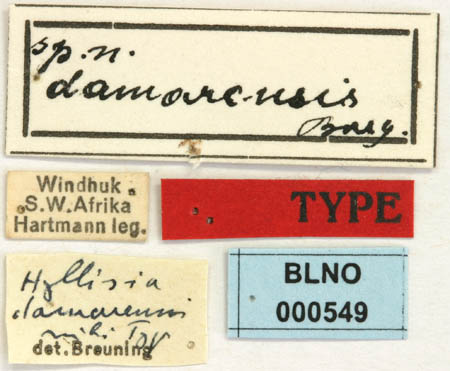 Hyllisia damarensis Breuning Specimen Type: holotype Institution: NMNH United States National Museum, Washington, DC, USA Photographer: Steve Lingafelter Collection Location: Windhoek, Damaraland, Namibia 51060