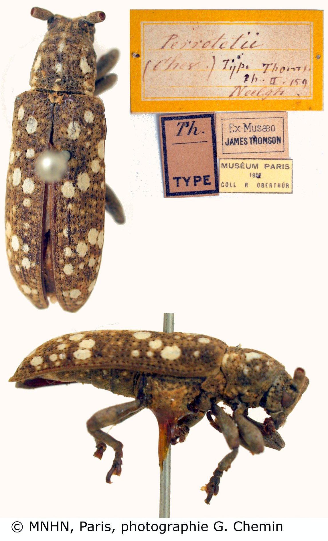 Apomecyna perrotetii Thomson Specimen Type: holotype © MNHN Institution: MNHN Museum of Natural History Paris, France Photographer: Gerard Chemin, Cerambycoidea Forum Collection Location: Nilgiri Hills, Tamil Nadu, India 101120