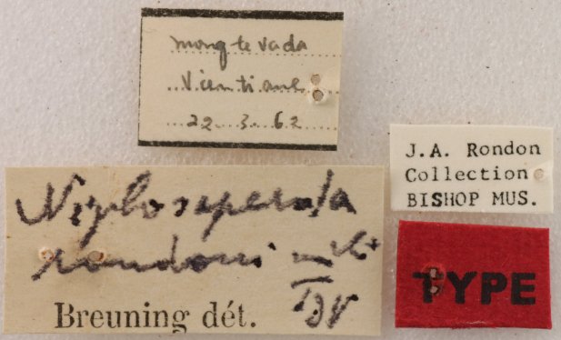 Niphosaperda rondoni Breuning Specimen Type: holotype Sex: m Institution: BPBM Bernice P. Bishop Museum, Honolulu, Hawaii, USA Photographer: Nobuo Ohbayashi Collection Location: Vientiane, Laos 44904