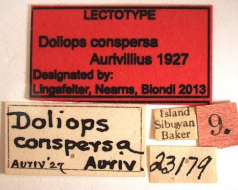 Doliops conspersa Aurivillius Specimen Type: lectotype Institution: NMNH United States National Museum, Washington, DC, USA Photographer: Steve Lingafelter Collection Location: Sibuyan, Philippines 58614